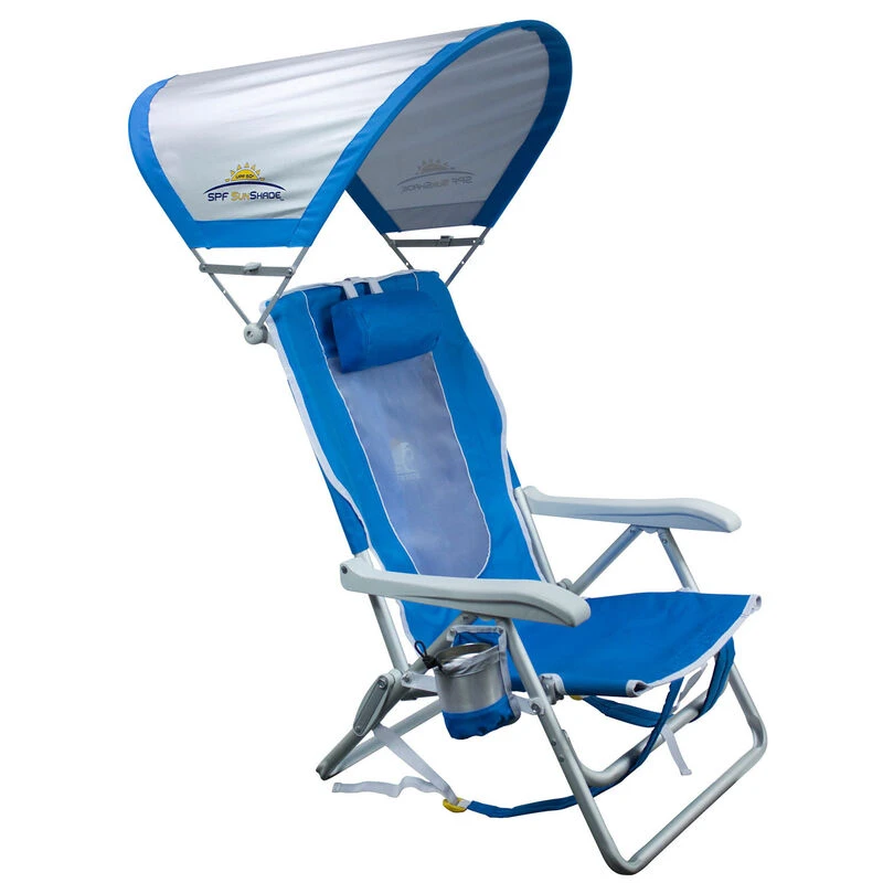 What makes this beach/camp/picnic/tailgating/spectating/backyard chair so unique? GCI Outdoor’s SunShade Backpack Beach Chair has an umbrella-like shade made of fabric that has an ultraviolet protection factor (UPF) of 50 to prevent damaging sunlight from falling directly on you. Plus, it can rotate front to back so it covers the right angle without having to change your point of view. It even collapses flat when the wind kicks up or you need to keep from blocking someone else’s vision.