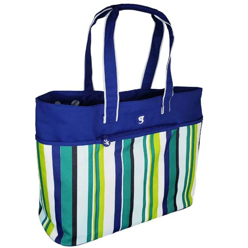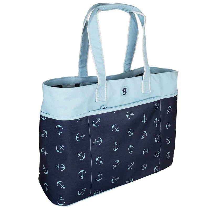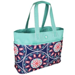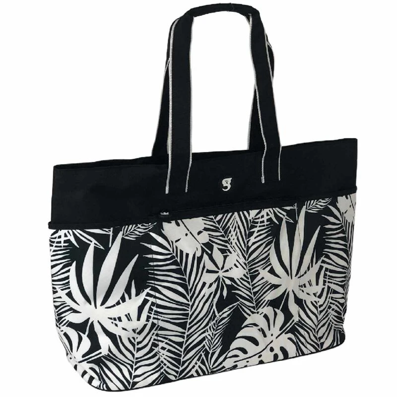 Pack and store everything you need for the pool, beach or other activity. The oversized tote has 5 pockets and durable handles. Plus, the inside liner offers a contrasting look to the outside pattern.
