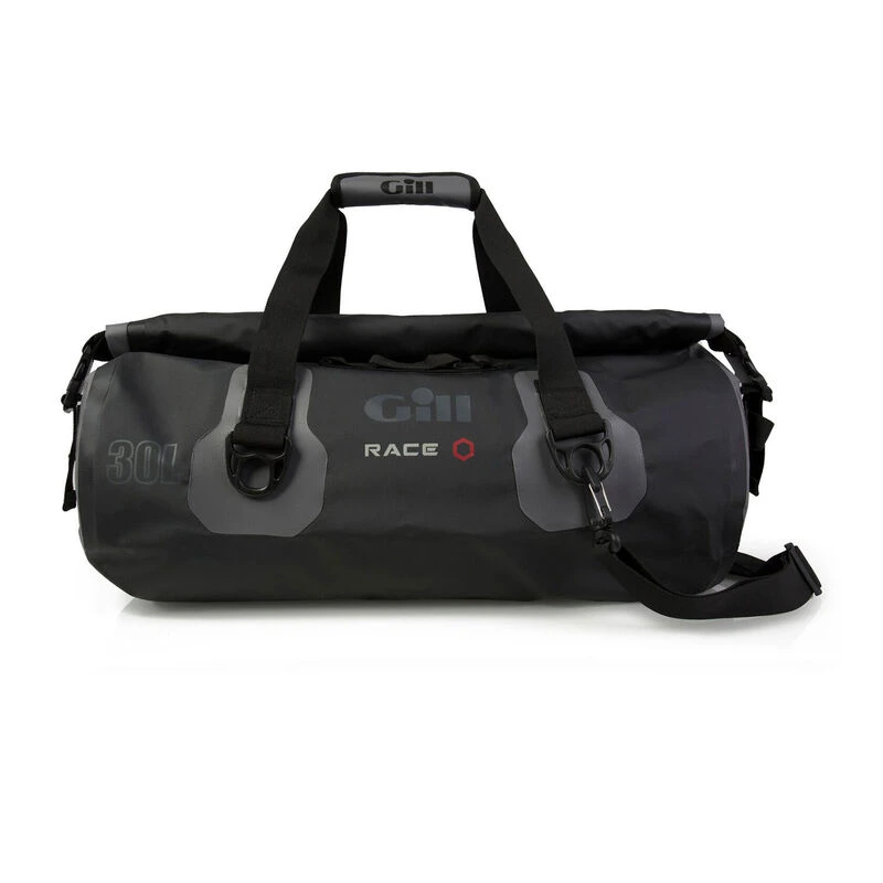 This Race Team Bag is made of puncture-resistant, 100% PVC tarpaulin with stitch-free, high frequency welded seams and a watertight roll-down closure so you get the utility of a 100% waterproof dry bag, only in a better-looking form that coordinates with the rest of your go-fast Gill gear.