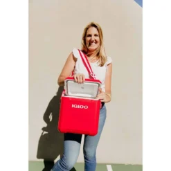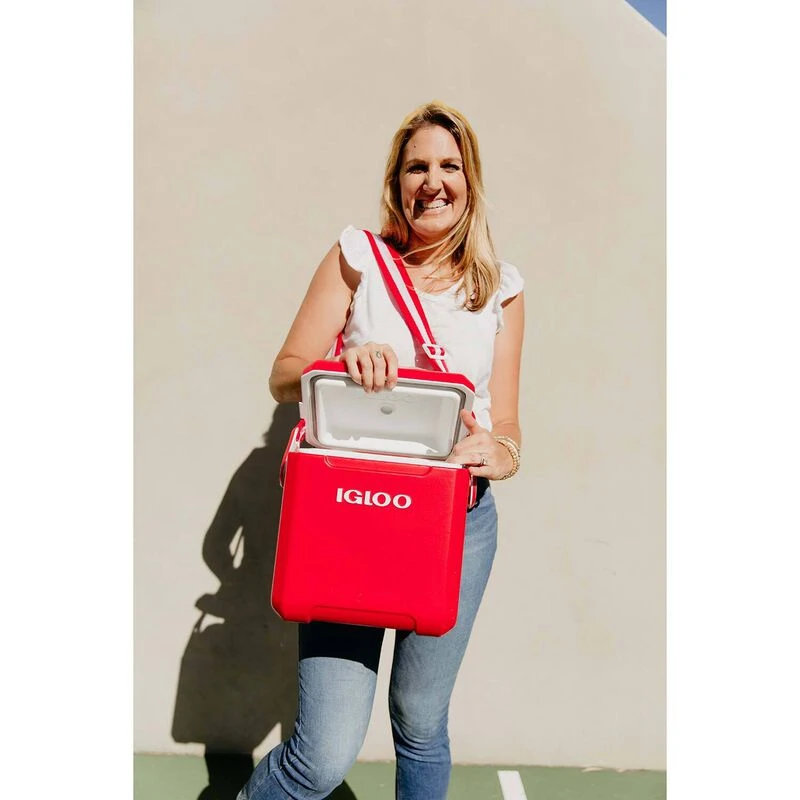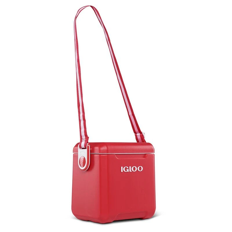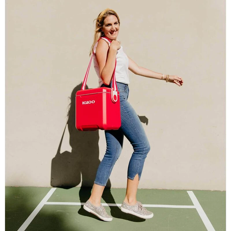 AÂ modern twist on an Igloo classic. Designed with more style and ease than ever, this carry-able 11 qt cooler comes in a rainbow of fun colors and features a stylish, adjustable strap you can wear over your shoulder or as a crossbody, like a purse or bag, so your hands stay free for holding other important things (like little hands) or for giving out cold drinks and heartfelt high-fives.