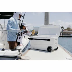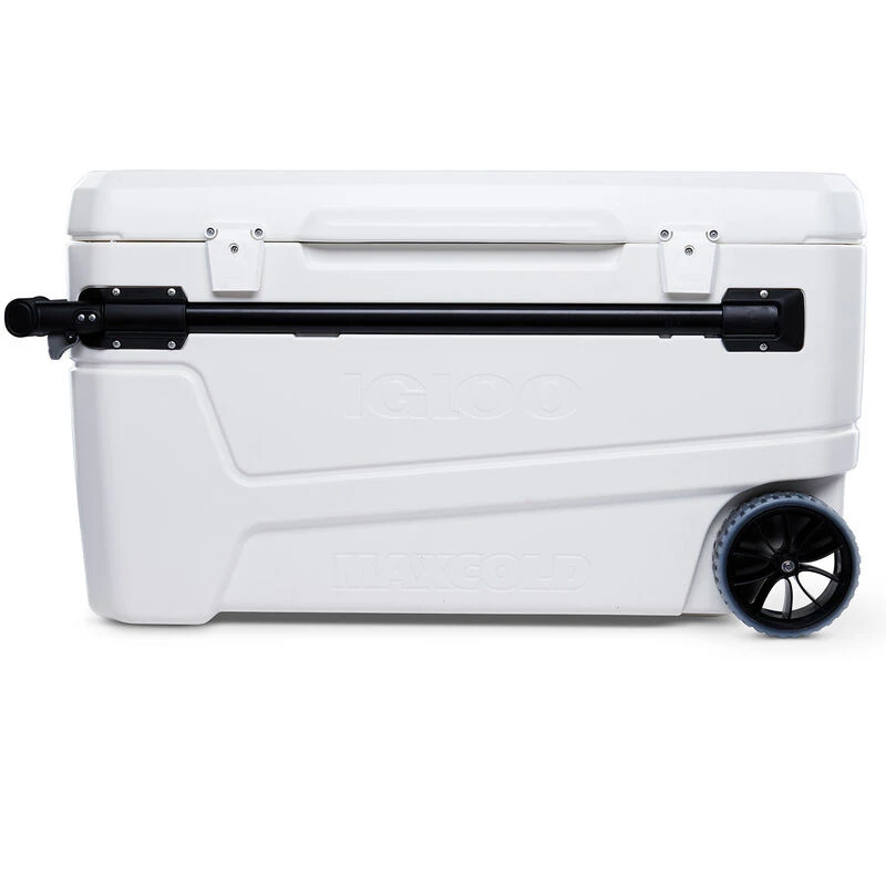 Enjoy refreshments at the game or the lake with the Igloo Glideâ„¢ 110-qt. Marine Wheeled Cooler with Telescoping Handle. The cooler’s extra-large size holds up to 110 qt. , while Ultratherm® insulation in the body and lid keeps ice for 5 days at 90°F.