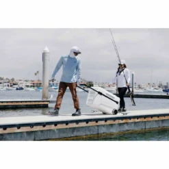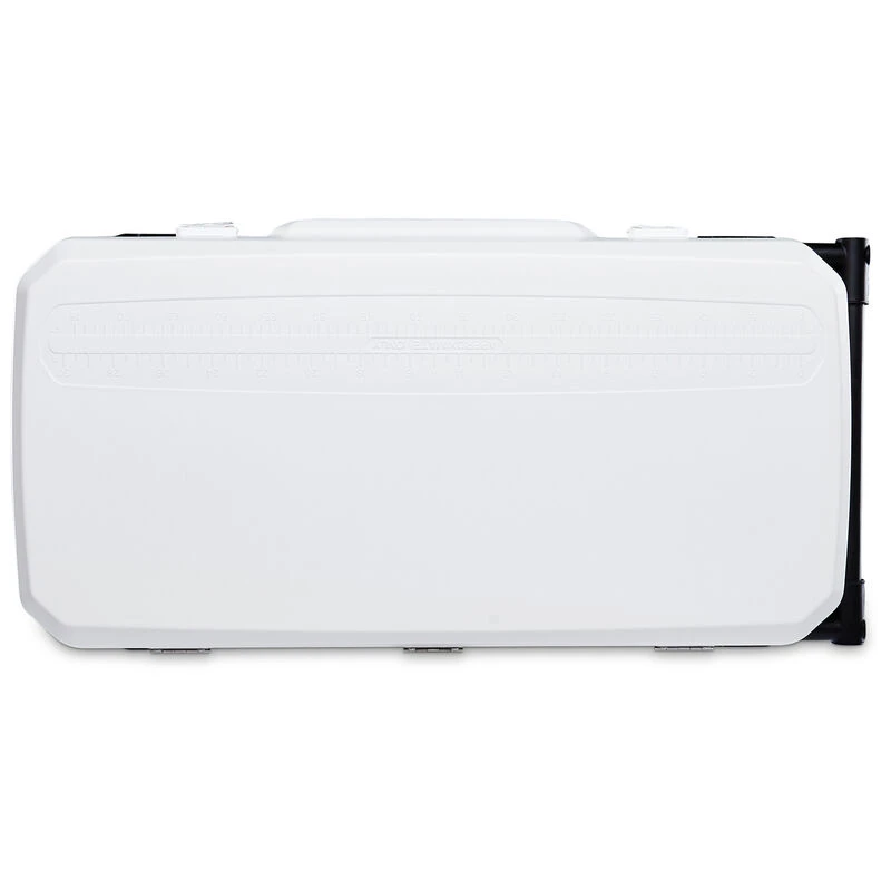 The horizontal Slide-and-Lock telescoping handle provides leverage and helps lighten lifting loads, and the oversize sport rally wheels help lighten the load by up to 80% for ease of portability. The fish-keeper scale helps you measure your catch.