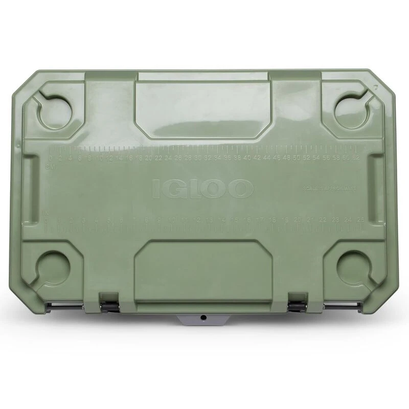 On a heaving deck or at a rustic camp site, rugged IMX coolers are designed to stand up to rough conditions and keep their contents cold. Ice retention is maximized by Cool Riser Technology® and Ultratherm® insulation in the body and lid. Usage is made easy by marine-grade rubberized lid latches and self-stopping integrated hinges that keep the lid open for easy access to contents. Other features include molded-in non-slip steel braided cable side handles, anti-skid feet, lockable lid loops, stainless steel locking plate, bottle opener, four self-draining cup holders built into lid. Anglers are kept honest by the fish ruler molded into the lid. A threaded drain plug with hose hookup makes draining easy.