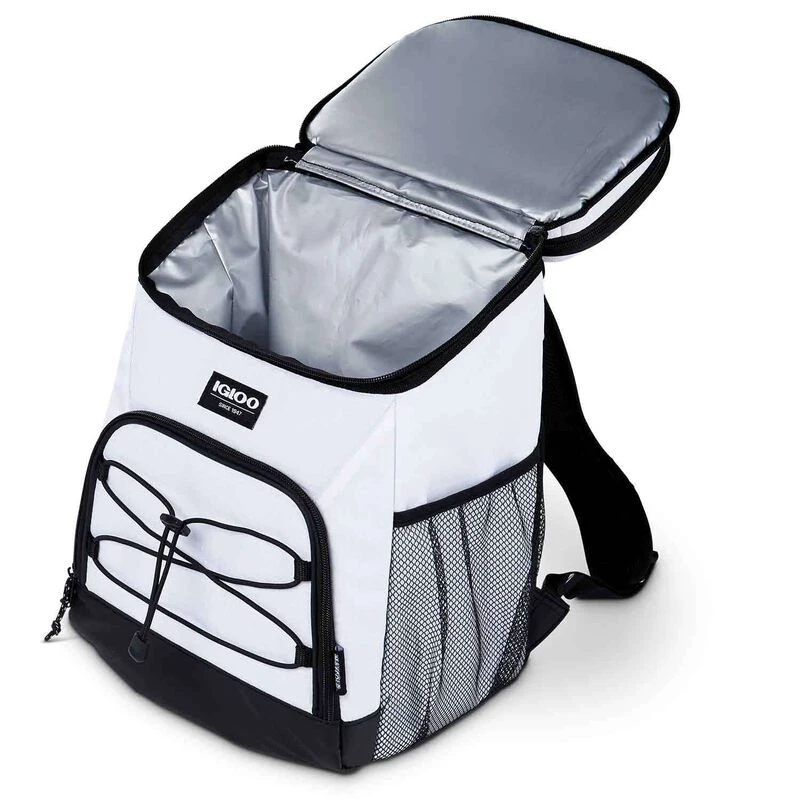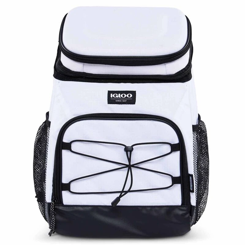 For a long day at the beach, park or sporting event the Igloo® Hard Top Backpack Cooler keeps all your items cold. It features a molded compartment with a crushproof top compartment for maximum durability. Along with mesh pockets on the side, the front zippered pocket and bungee straps offer extra storage. The padded air mesh backpack straps deliver comfortable and hands-free transportation.