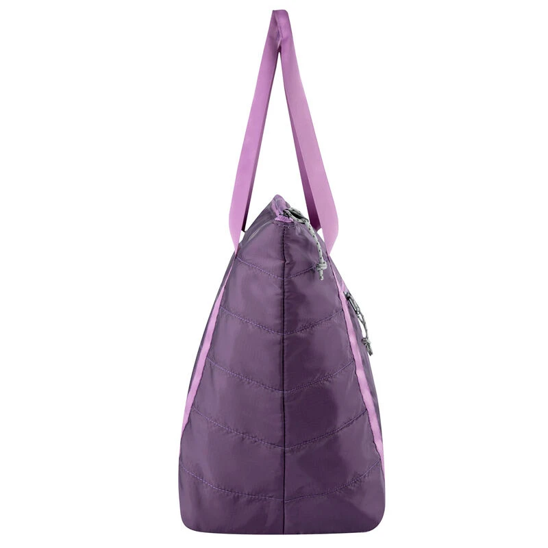 The compressible construction lets you scrunch this bag into its own front pocket! That way, when it’s empty and you’re done using it, you can easily pack it away or use the included carabiner to attach it to a backpack, bike basket, etc.
