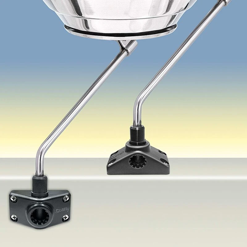 These rod holder mounts fit the popular Scotty® and many other socket type rod holder mounts. They allow the “Marine Kettle”® to be locked in 12 different positions and quickly disconnects for easy storage without tools. Rod holder sockets not included.