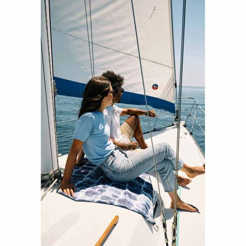 It’s a top of the line boating towel, it’s your beach towel, it’s your yoga towel, and it’s a pack towel when you go camping or travel. Designed to be versatile without sacrificing performance, so you can own less and do more. Imported