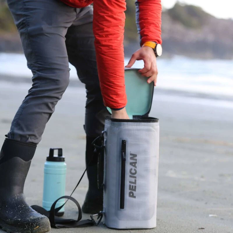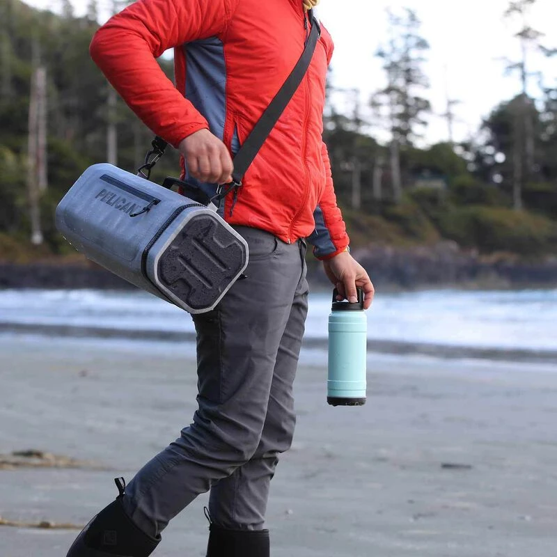 Finished with a leak resistant zipper, this cooler will keep your drinks cold all day long and performs best when used with a Pelican Ice Pack. With a padded shoulder strap and rubberized carry handle, this cooler is easy to carry and is the perfect companion for every Dayventure.