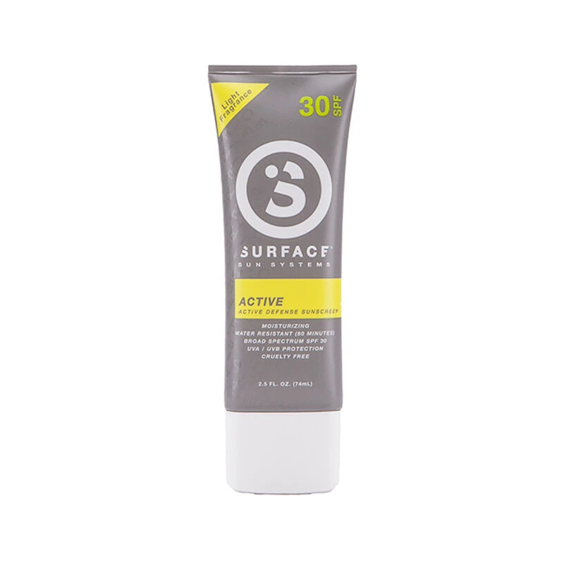 Surface Active Sunscreen is a defensive product line developed for athletes, adventurers and fans who need a sunscreen capable of handling the different activities they do on any given weekend. From land to water, Surface Active Sunscreen is built to withstand sweat and water while protecting you from the harshest of elements.Â