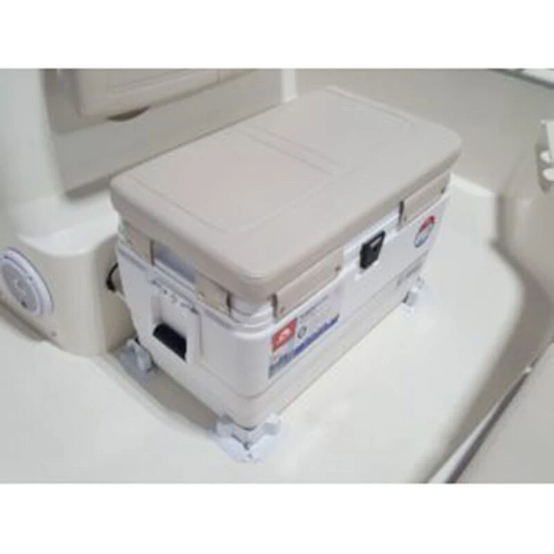 VersaChock brand cooler chocks are the perfect solution for securing coolers, bait pails, portable fuel tanks and other cargo. They can easily be removed when not in use, leaving just the smooth low-profile base plates for a trip-free usable deck. Only the highest quality UV resistant marine grade plastic resin is used, assuring long life against fading and cracking. We have also made the wall thickness thicker than most other products, making them very robust. Large integrated hooks allow for most any size tie downs to be used. #10 x 1/2″ long stainless-steel screws included. Tie downs are not included.