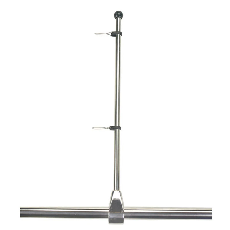 Heavy, cast stainless steel rail clamps for 7/8″ and 1″ rails. Includes quick-release flag clips. Staff is 1/2″ tube stock. Replacement staffs, including clips, sold separately.